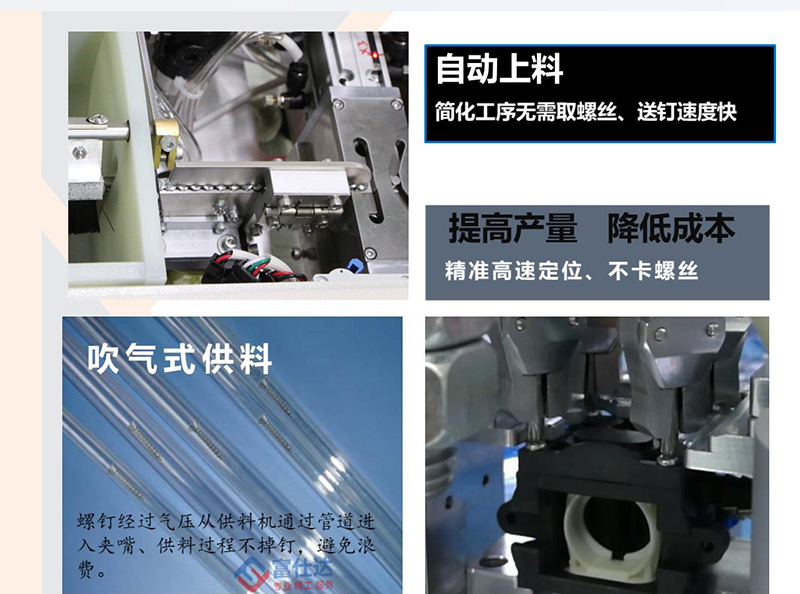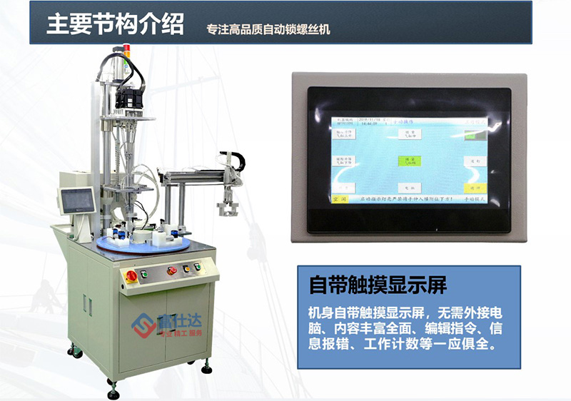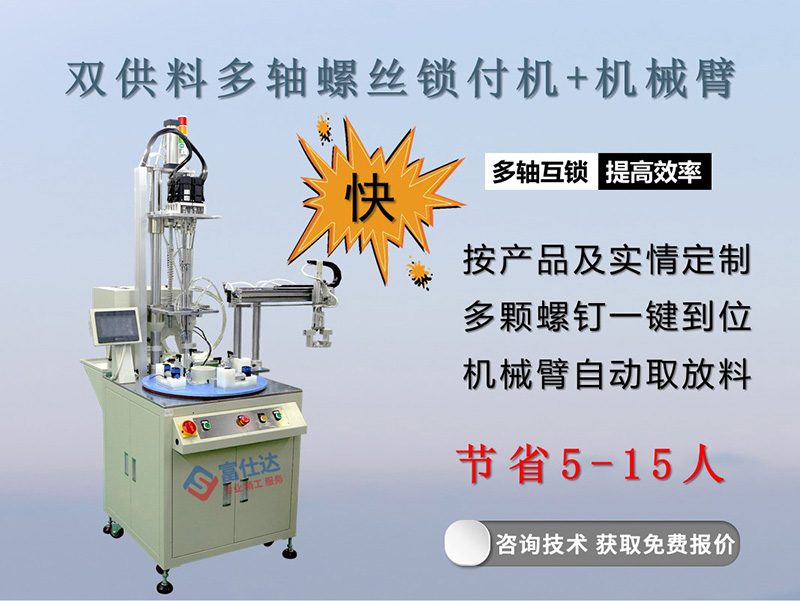 轉(zhuǎn)臺式自動鎖螺絲機(jī)主要由多軸鎖付系統(tǒng)、自動送釘系統(tǒng)、同步作業(yè)臺、PLC控制系統(tǒng)等組成,設(shè)備根據(jù)產(chǎn)品生產(chǎn)要求定制送釘系統(tǒng)及鎖付系統(tǒng),可實(shí)現(xiàn)一次輸送并擰好多顆螺絲的效果,通過設(shè)計(jì)同步作業(yè)臺,增強(qiáng)人機(jī)互動,多工序同步進(jìn)行,提升效率。日常操作中,作業(yè)員僅需不停取放產(chǎn)品即可,設(shè)備自動輸送螺絲、自動擰好所有螺絲。