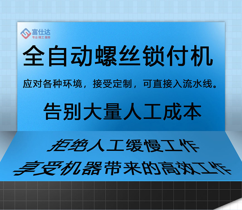 富仕達(dá)擁有獨(dú)立研發(fā)設(shè)計(jì)團(tuán)隊(duì)600多位自動化高級工程師,5000㎡自動鎖螺絲機(jī)生產(chǎn)、測試車間,專業(yè)售后服務(wù)團(tuán)隊(duì),為客戶提供方案設(shè)計(jì)、設(shè)備制造、操作培訓(xùn)、售后服務(wù)等一站式服務(wù)。 公司將持續(xù)提升技術(shù)創(chuàng)新和產(chǎn)品服務(wù)方面的優(yōu)勢,堅(jiān)持“專業(yè)、精工、服務(wù)”的企業(yè)理念,聚焦于自動鎖螺絲設(shè)備生產(chǎn),通過系統(tǒng)的一站式解決方案,真正的幫助客戶提升效率、降低成本,提升客戶的核心競爭力。